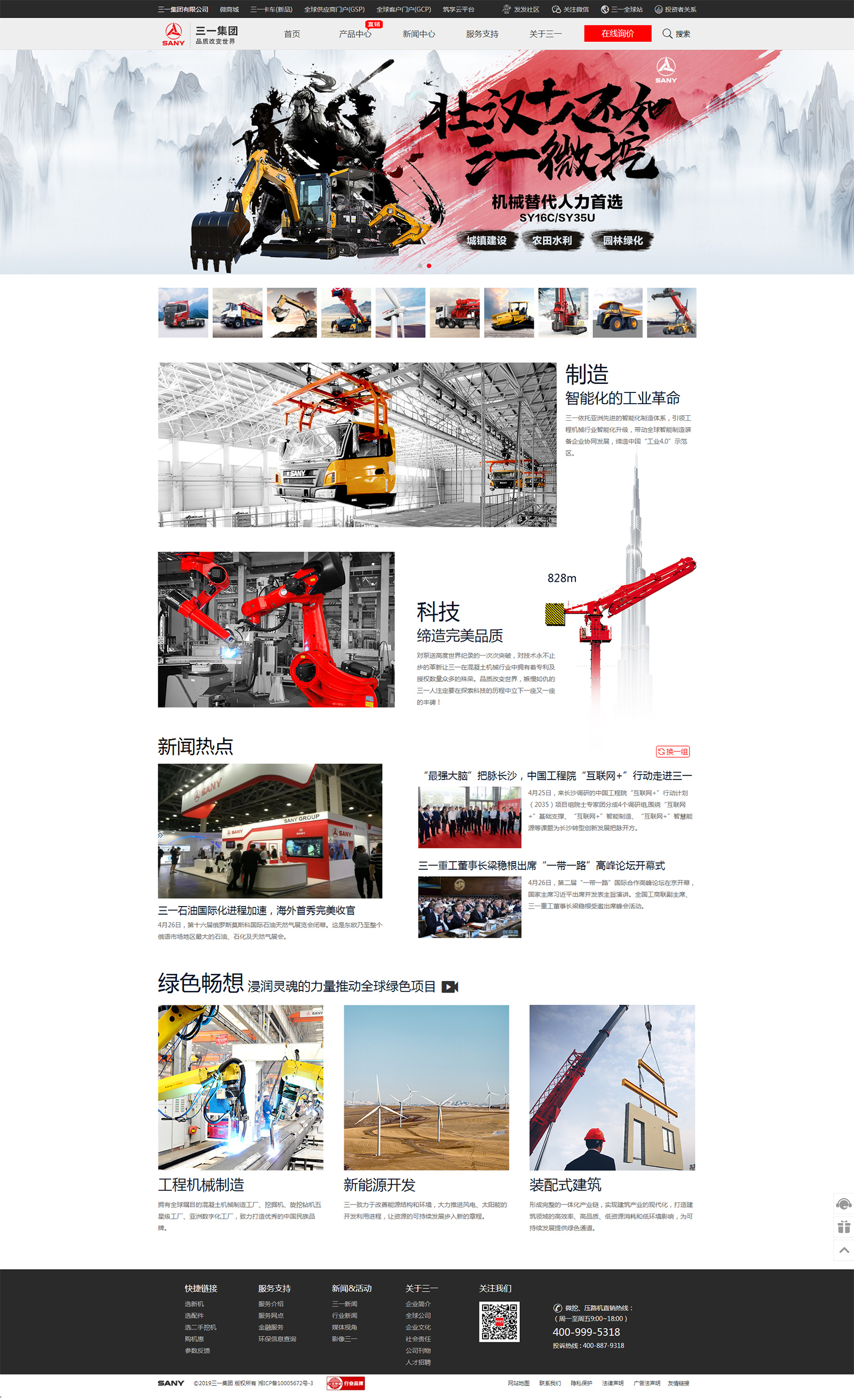 三一集团有限公司始创于1989年。自成立以来,三一始终秉持“创建一流企业,造就一流人才,做出一流贡献”的愿景,打造了知名的“三一”品牌。三一集团主业是以“工程”为主题的装备制造业,主导产品为混凝土机械、挖掘机械、起重机械、筑路机械、桩工机械、风电设备、港口机械、石油装备、煤炭设备、 精密机床等全系列产品,其中挖掘机械、桩工机械、履带起重机械、移动港口机械、路面机械、煤炭掘进机械为中国主流品牌;混凝土机械为全球品牌。